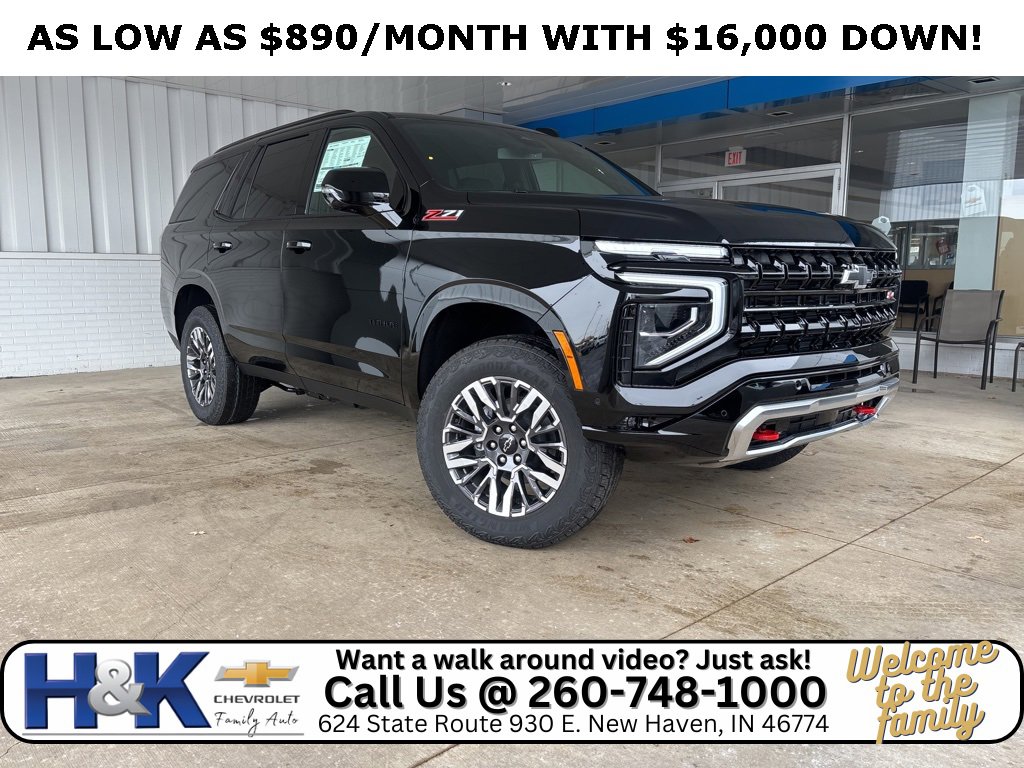H&K Chevrolet has been family owned and operated for over 70 years. With our recently acquired New Haven location, we started our business in a town of 4,000 people, and carry forward over 70 plus years of success from our Continental location. We prioritize customer service, honesty, and up-front pricing to provide the easiest buying experience possible. At H&K Chevrolet, we are committed to building lasting relationships with our customers that extend beyond sales and service. Disclaimer: Payment shown above is based on financing for 84 months at 6.9% APR or applicable GM Financial promotional rate, whichever applies. Payment calculations assume qualification for GM Employee Pricing. All offers are subject to credit approval and may vary depending on individual credit history. Not all customers will qualify. Black 2026 Chevrolet Tahoe Z71 4WD 10-Speed Automatic with Overdrive EcoTec3 5.3L V8 Tahoe Z71, 4WD, Jet Black Leather.