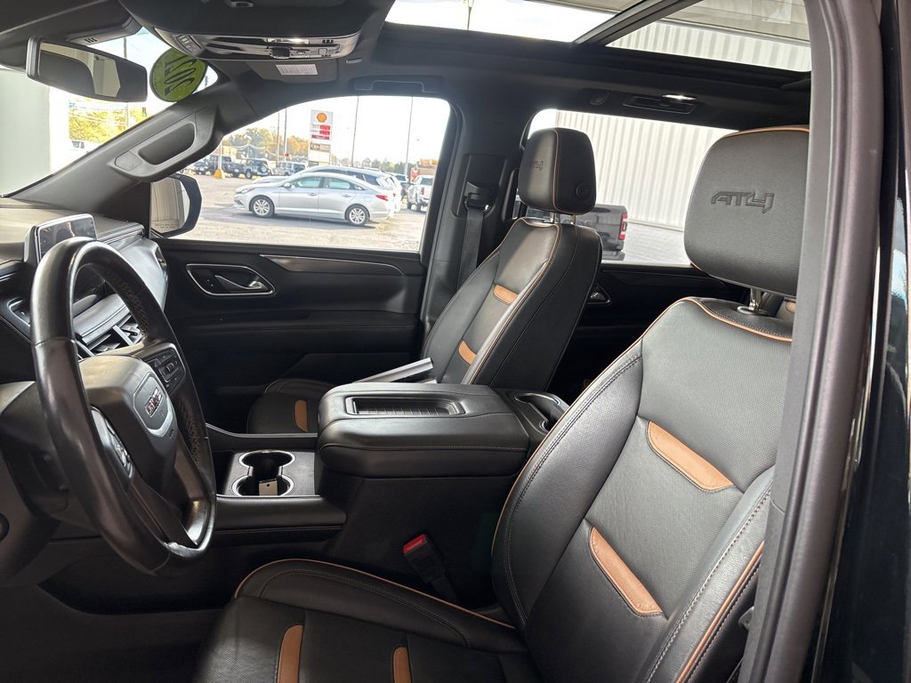 CLEAN CARFAX!, CAPTAIN CHAIRS, DUAL PANEL SUNROOF, AT4, 2ND ROW CAPTAIN SEATS!, POWER PANO DUAL PANE SUNROOF!, Yukon XL AT4, EcoTec3 5.3L V8, 10-Speed Automatic with Overdrive, 4WD, Jet Black w/Perforated Leather Seating Surfaces, 12-Way Power Seat Adjusters, 2 Presets For Outside Rearview Mirrors, 3rd Row 60/40 Power-Folding Split-Bench Seat, Black Roof-Mounted Luggage Rack Side Rails, Bose 9-Speaker Stereo Audio System Feature, Bright Front & Rear Door Sill Plates, Front High-Approach Angle Fascia, Hands-Free Power Programmable Rear Liftgate, Heated & Ventilated Driver & Front Passenger Seats, Heated 2nd Row Outboard Position Seats, Heated Automatic Steering Wheel, Heated Driver & Front Passenger Seats, Heavy-Duty Air Filter, Hill Descent Control, Inside Rear-View Auto-Dimming Mirror, Outside Heated Power-Adjustable Mirrors, Power Release 2nd Row 60/40 Split-Folding Bench Seat, Power Tilt & Telescopic Steering Column, Preferred Equipment Group 4SB, Red Horizontal-Mounted Recovery Hooks, Safety Alert Seat, Universal Home Remote. Recent Arrival! GMC Yukon XL AT4 4WD 10-Speed Automatic with Overdrive EcoTec3 5.3L V8